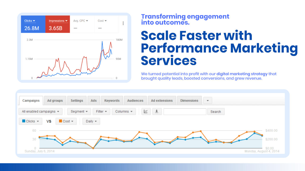 We help businesses achieve faster, measurable growth through our performance marketing services. Our data driven marketing strategy in Auckland drives targeted traffic and generates high-quality leads that contribute to business success.”