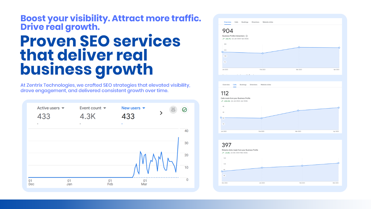 “We were struggling with SEO until Zentrix stepped in. They handled everything – on-page, off-page, and technical SEO – and we saw a 320% increase in traffic.”